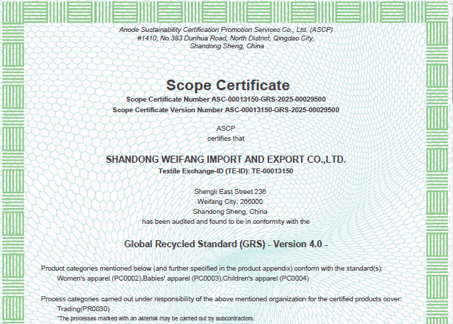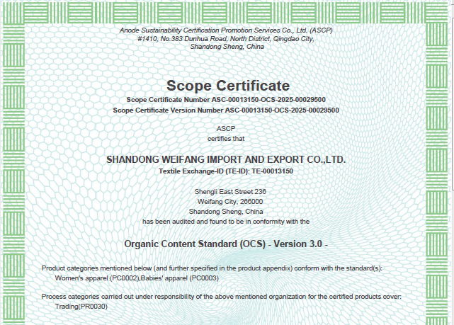 公司自營和代理服裝、食品、五金、化工、機(jī)電等各類商品及技術(shù)的進(jìn)出口業(yè)務(wù),公司有專門的生產(chǎn)、加工基地,并通過了Oeko - Tex Standard 100、GRS、OCS、RCS、USCTP等多項(xiàng)認(rèn)證,可以按客戶要求設(shè)計(jì)生產(chǎn),同時(shí)承辦中外合資經(jīng)營、合作生產(chǎn)、開展“三來一補(bǔ)”以及技術(shù)輸出、易貨、邊境貿(mào)易等業(yè)務(wù)。公司產(chǎn)品出口到日本、法國、俄羅斯等50多個國家或地區(qū)。
